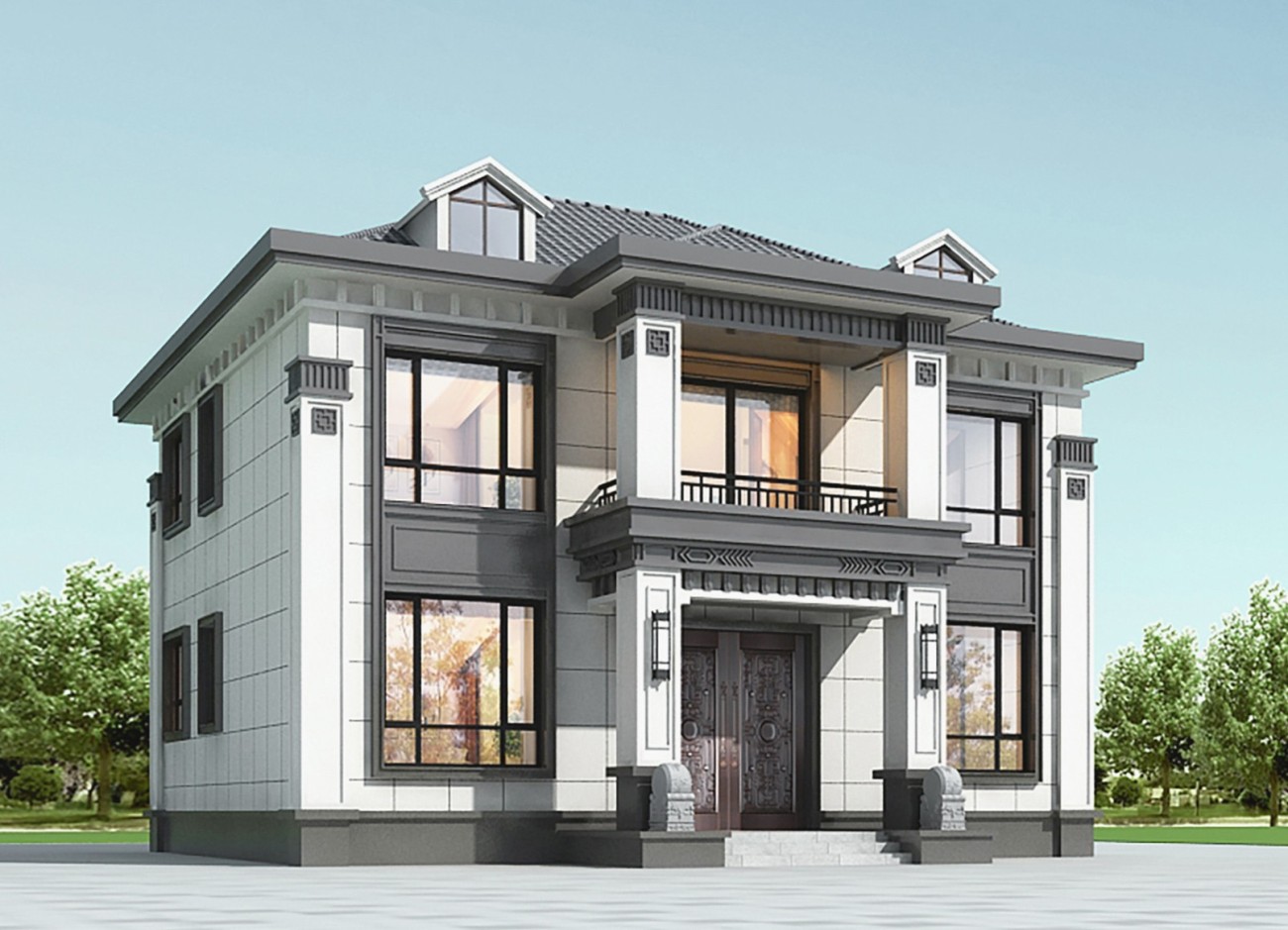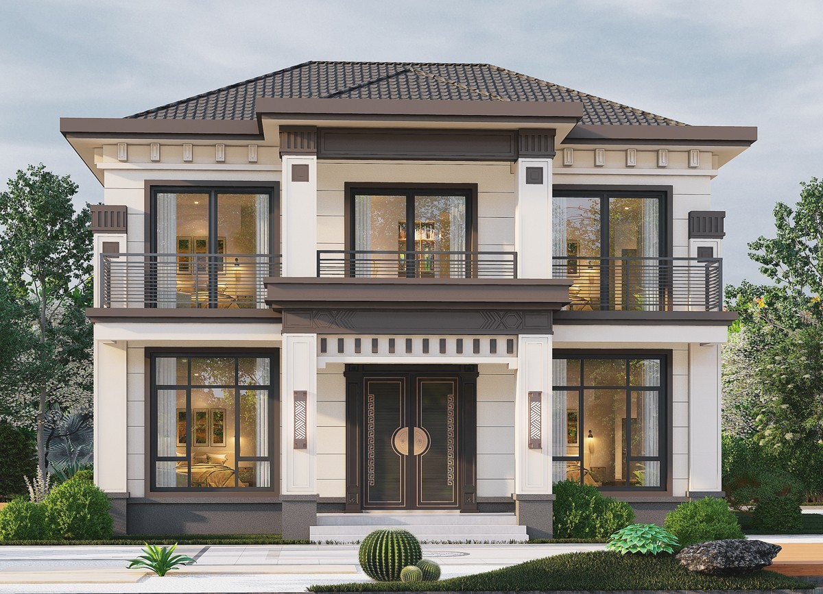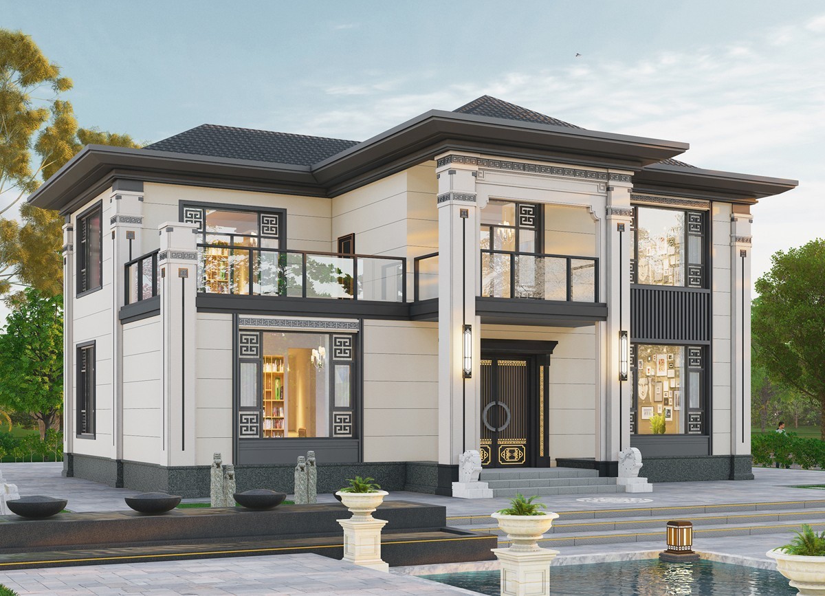 会东005 两层新中式(11.36x11.76米)-【易设计】